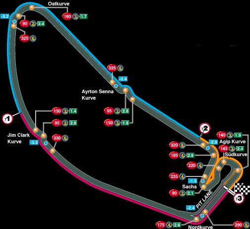 Rekord kola: Ricardo Patrese (I), Williams (26.7.1992) 1m 41.591s (241,498 km/h)